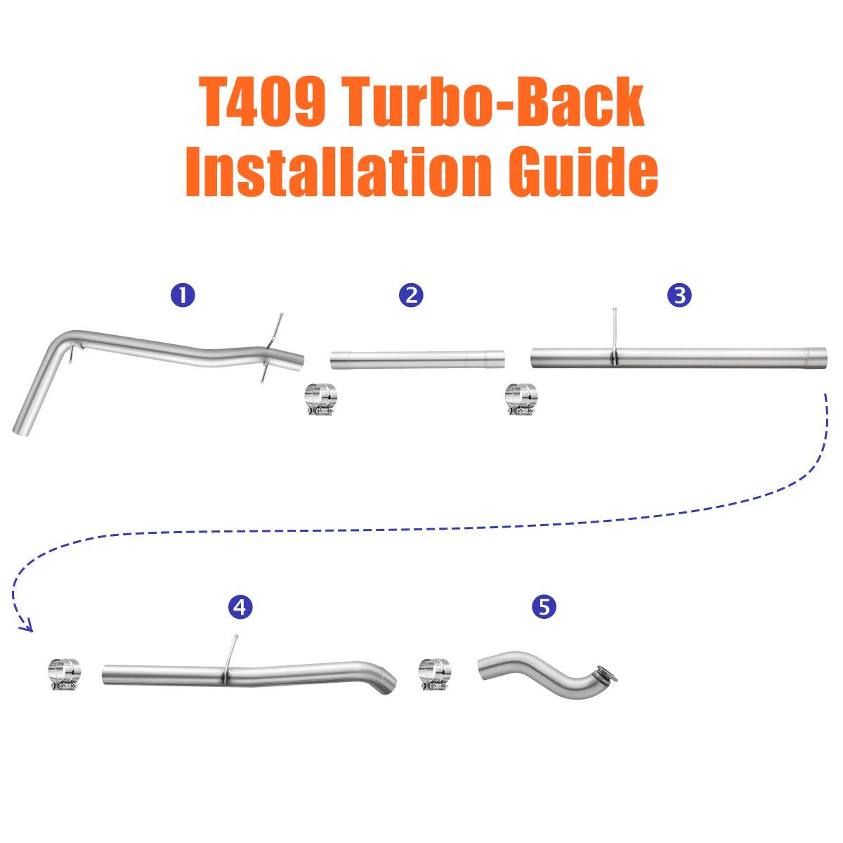 Performance & Durability: The 3-inch diameter 409 stainless steel construction reduces backpressure, lessens strain on the turbo and engine, allows for easier torque release, and offers superior corrosion resistance compared to factory piping.