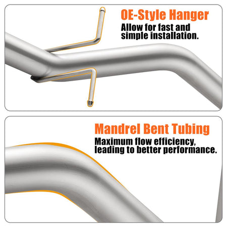 · Built for the Long Haul: Constructed from T-409 stainless steel, this system is made to last through tough conditions, outlasting the OEM aluminized steel exhaust.