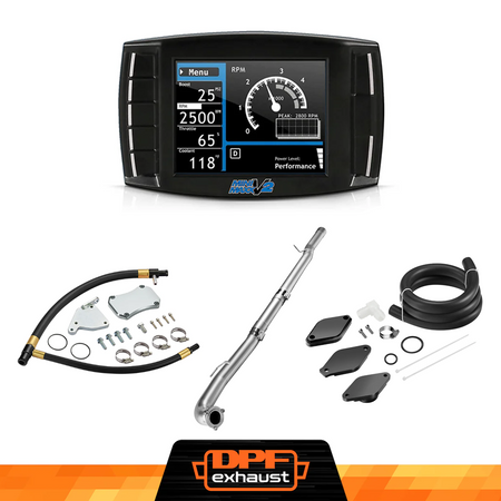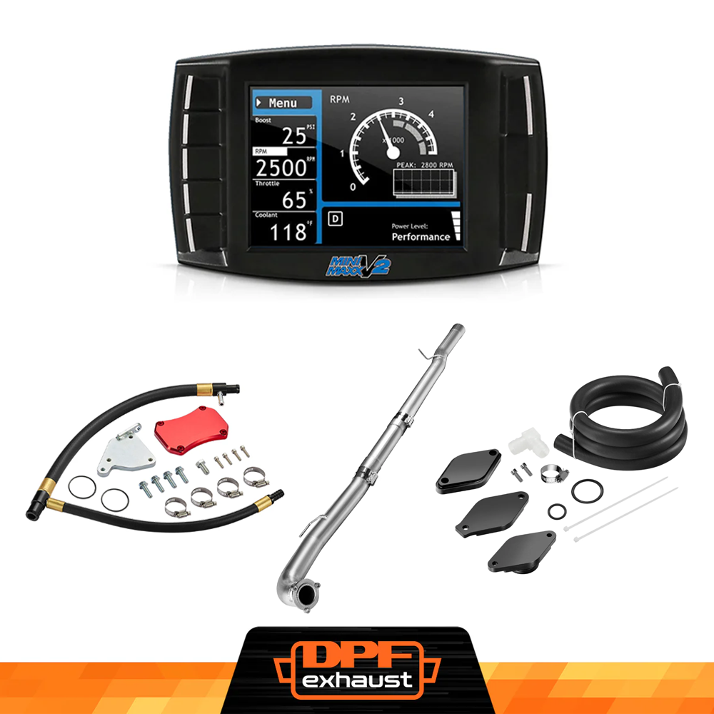 This kit comes with everything you need to delete the EGR, DPF, and DEF systems on your 2015.5-2016 LML Duramax. It includes the Mini Maxx V2 Delete Tuner for tuning and real-time adjustments, a complete EGR Delete Kit to improve engine efficiency, and a DPF Delete Race Pipe to optimize exhaust flow. It’s a one-stop solution for off-road performance upgrades.