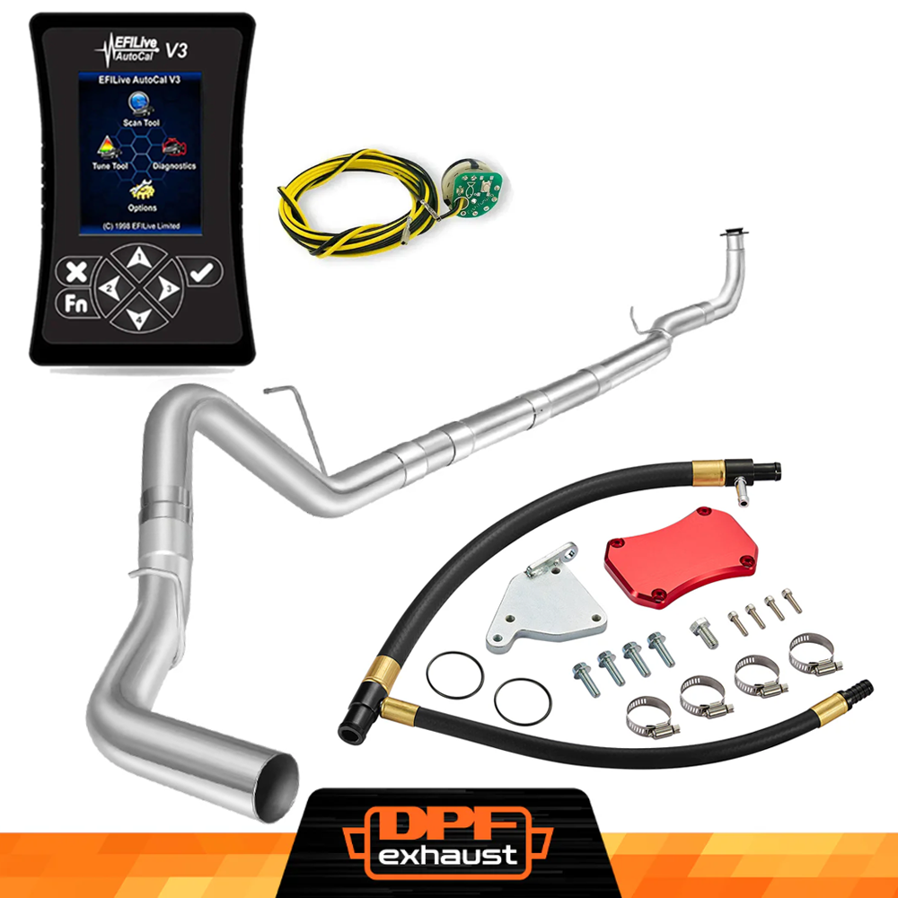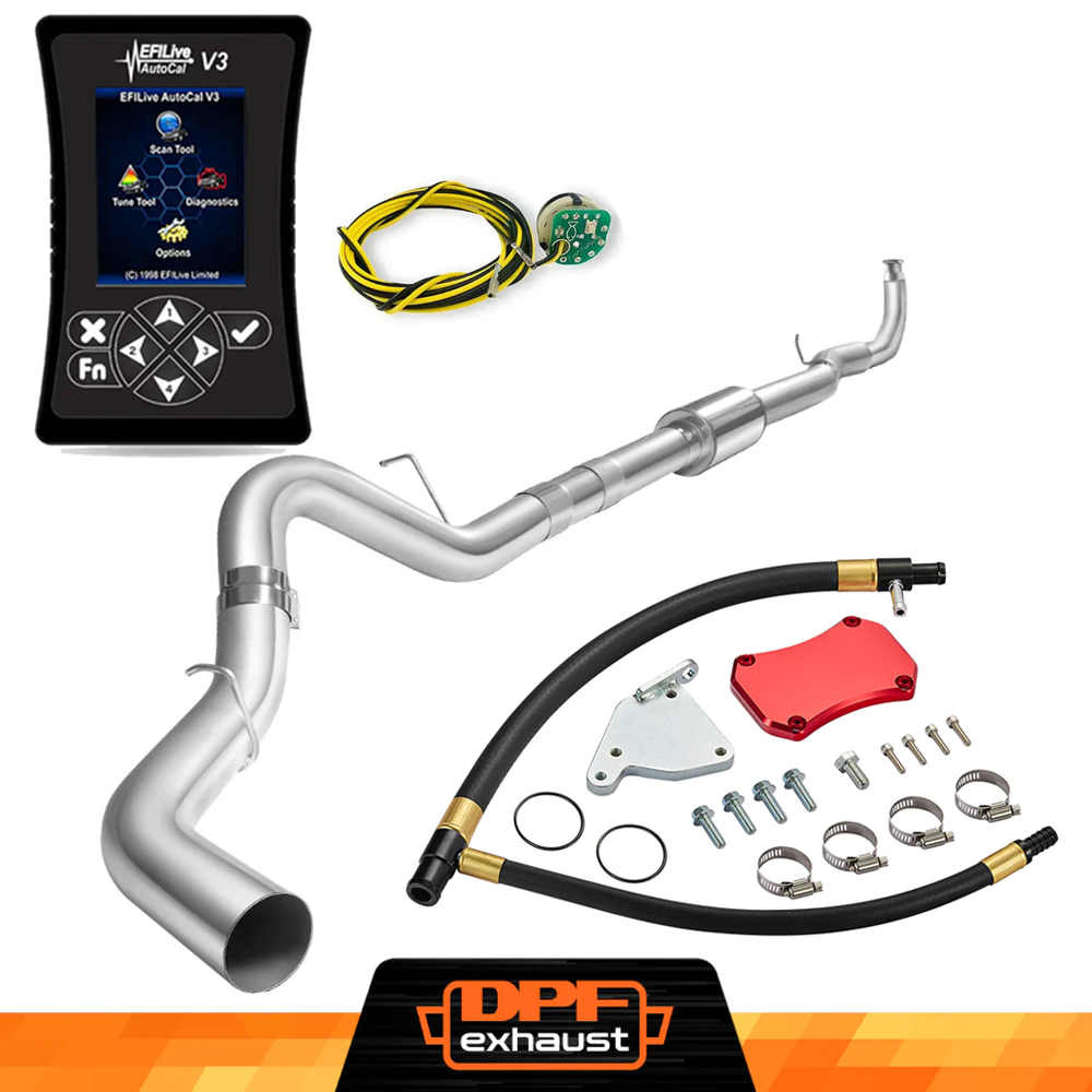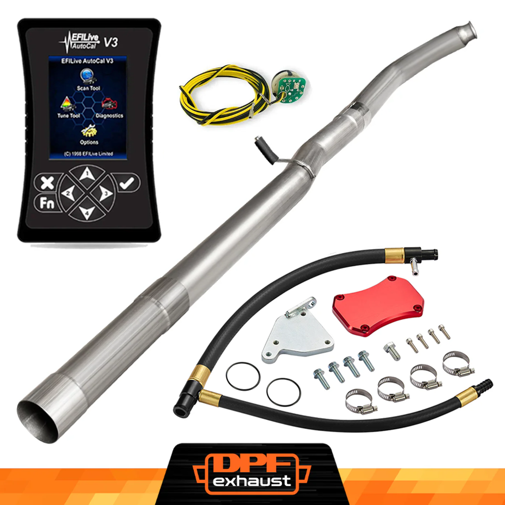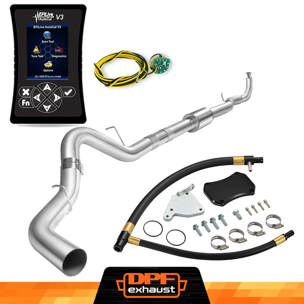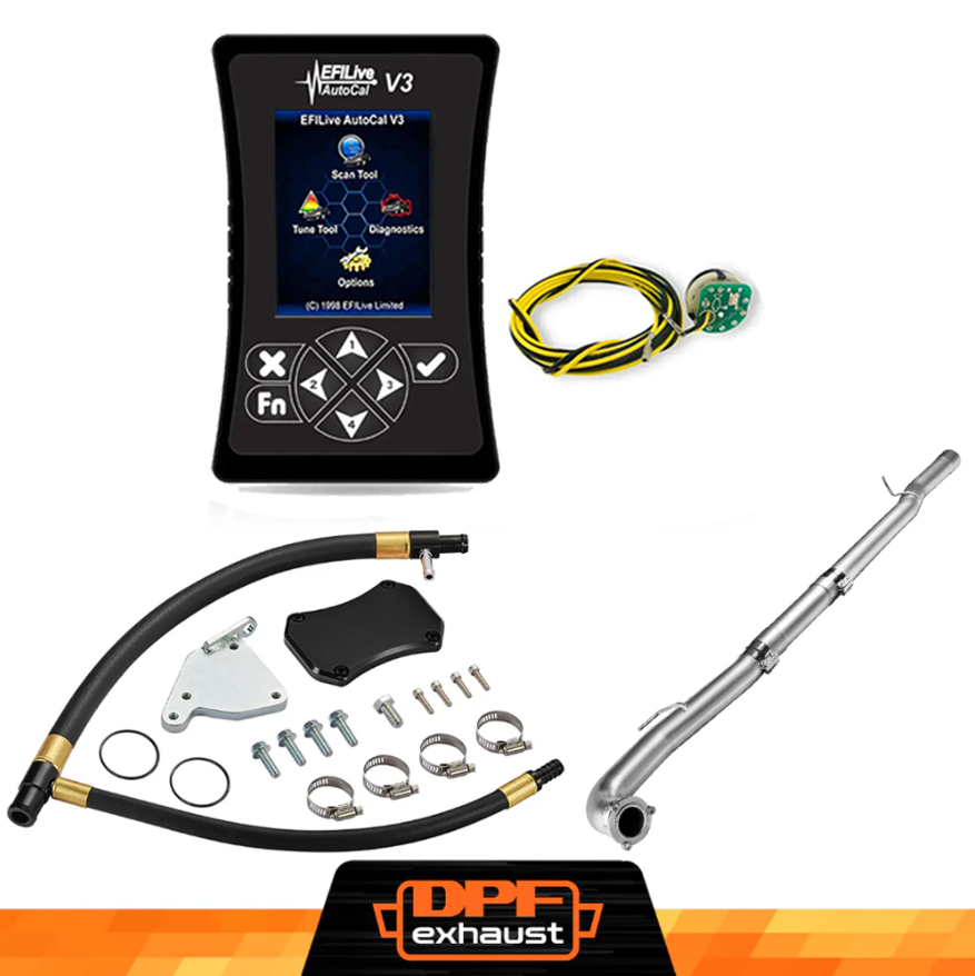 This kit comes with everything you need to delete the EGR, DPF, and DEF systems on your 2011-2016 LML Duramax. It includes the EFI Live AutoCal V3 for tuning and real-time adjustments, a complete EGR Delete Kit to improve engine efficiency, and a DPF Delete Race Pipe to optimize exhaust flow. It’s a one-stop solution for off-road performance upgrades.