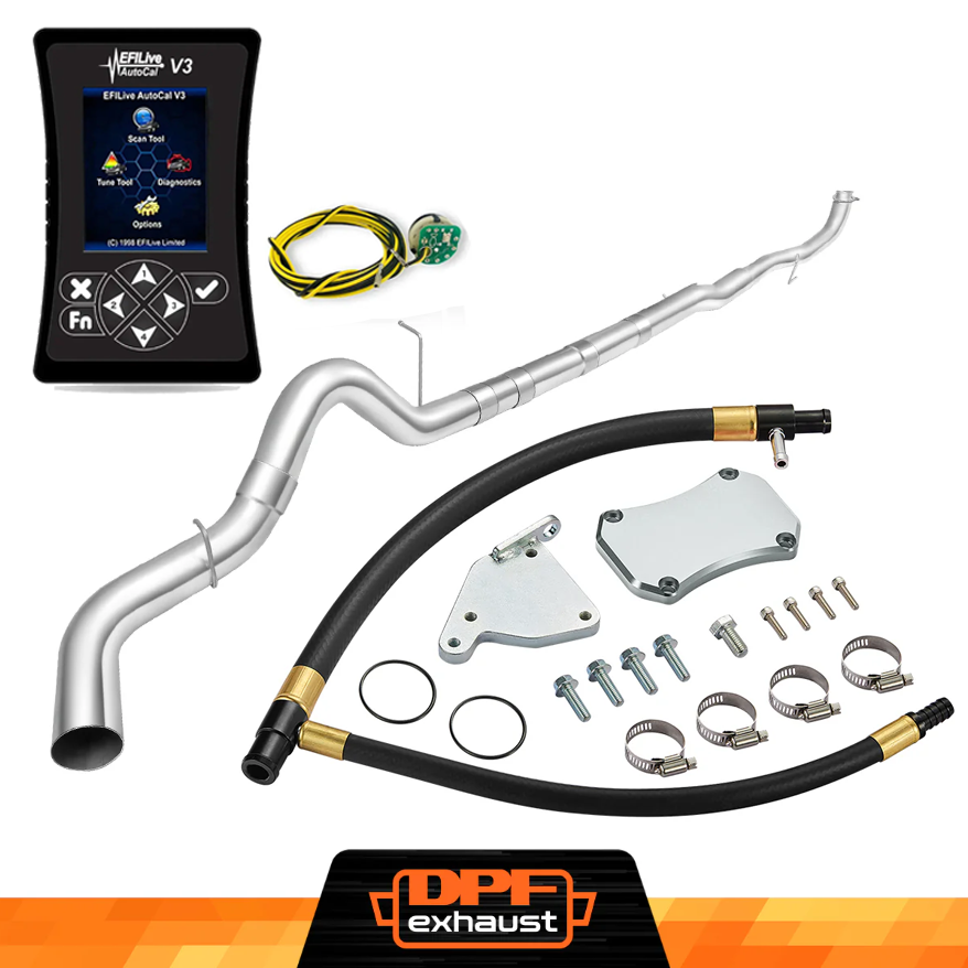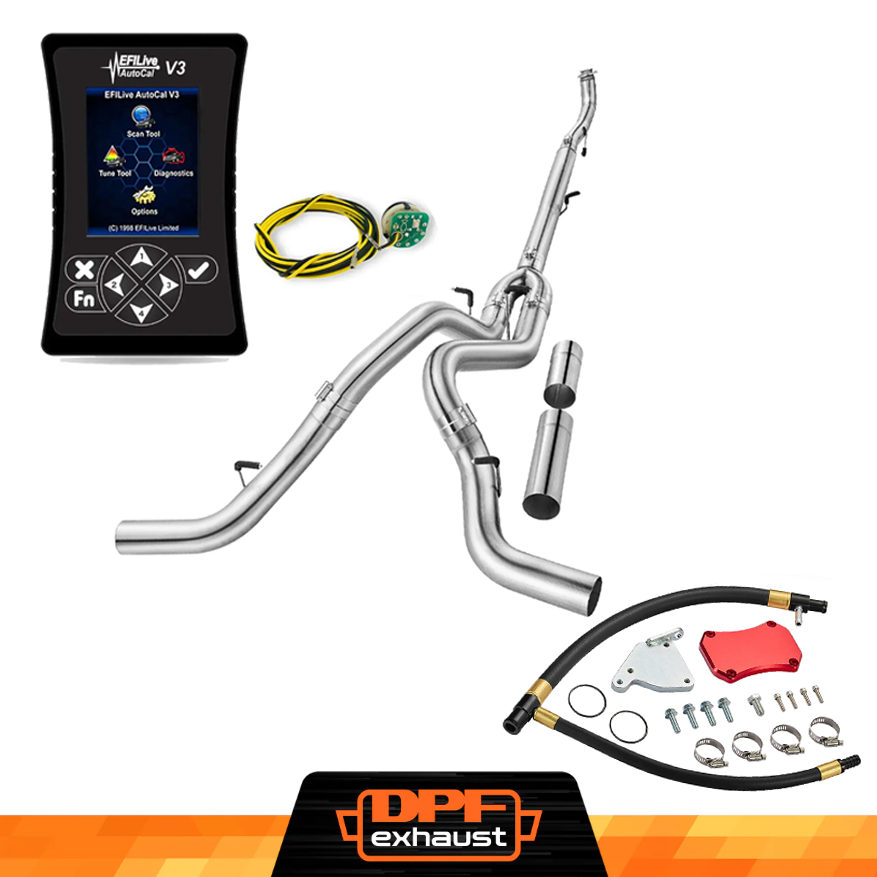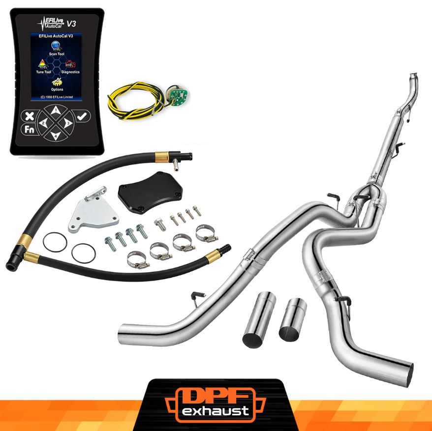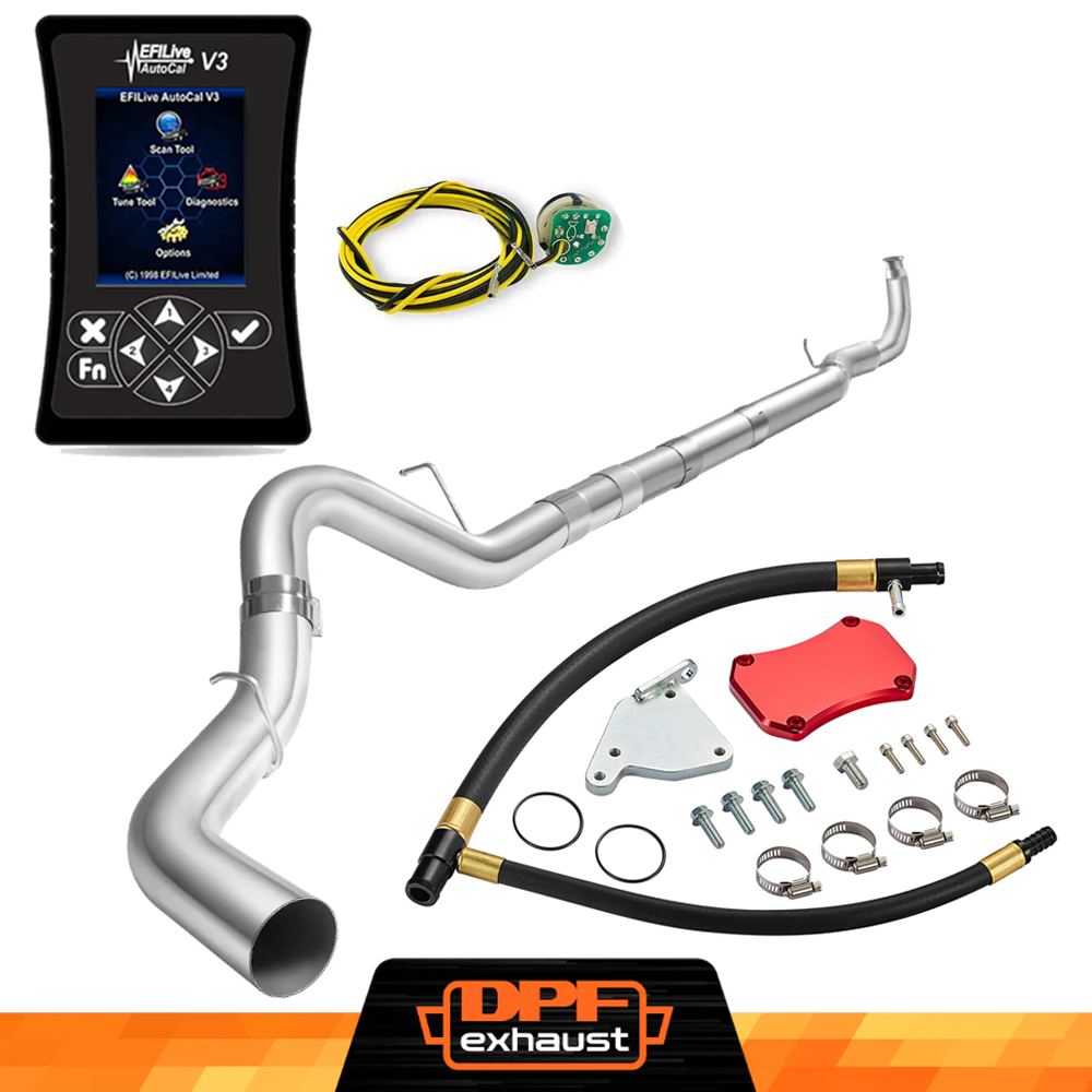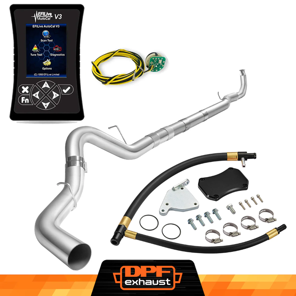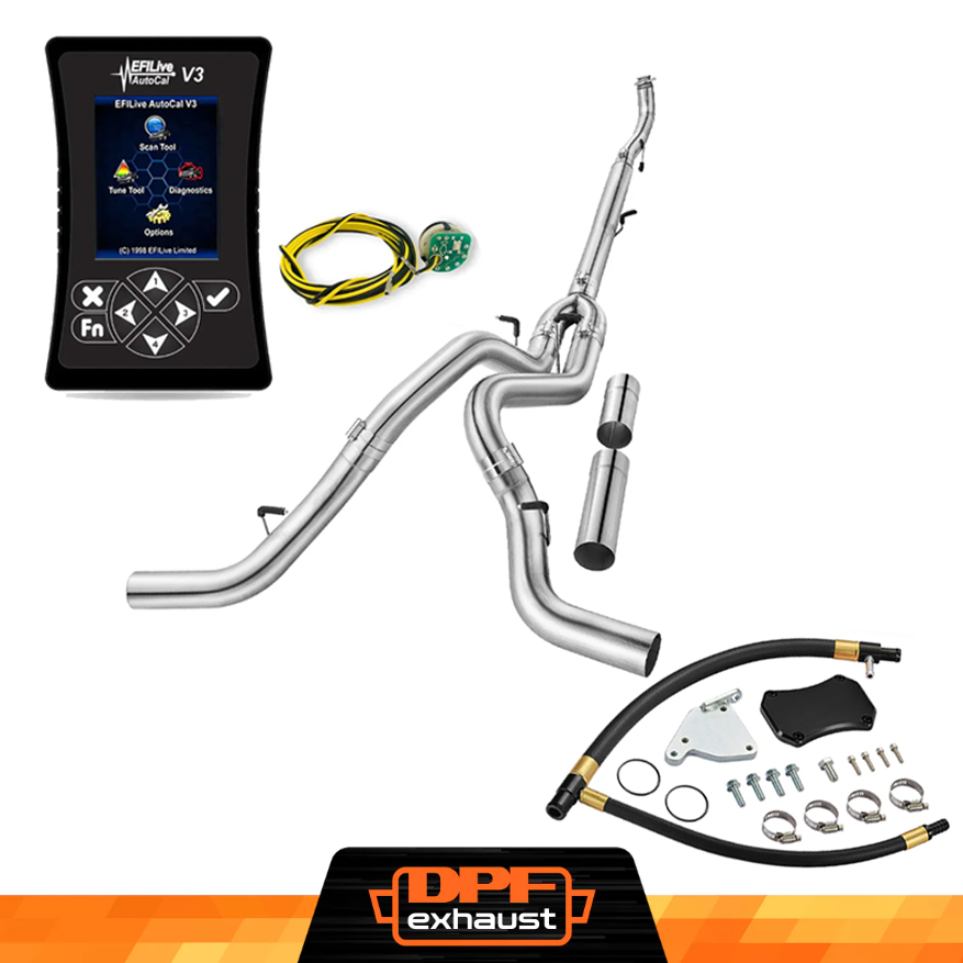 This kit comes with everything you need to delete the EGR, DPF, and DEF systems on your 2011-2016 LML Duramax. It includes the EFI Live AutoCal V3 for tuning and real-time adjustments, a complete EGR Delete Kit to improve engine efficiency, and a DPF Delete Race Pipe to optimize exhaust flow. It’s a one-stop solution for off-road performance upgrades.