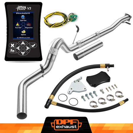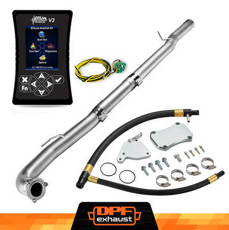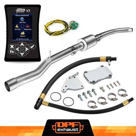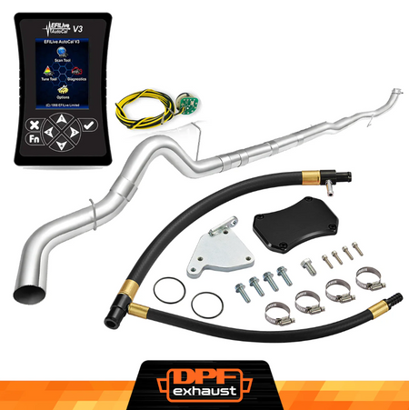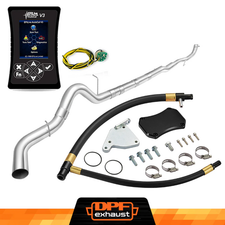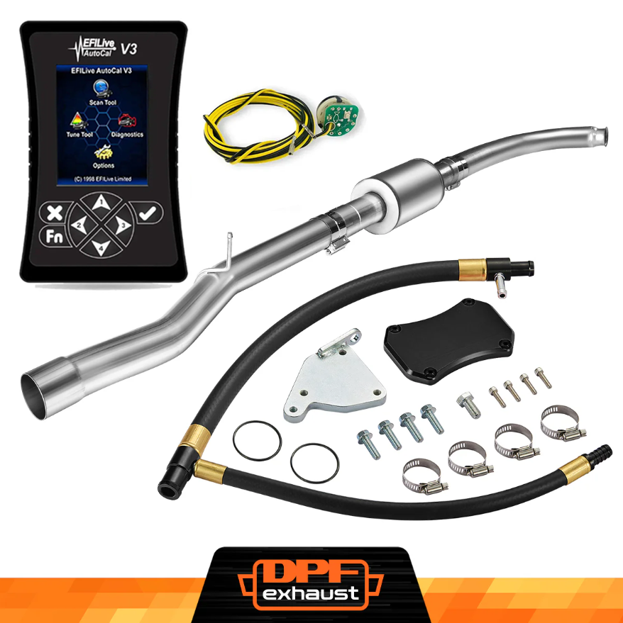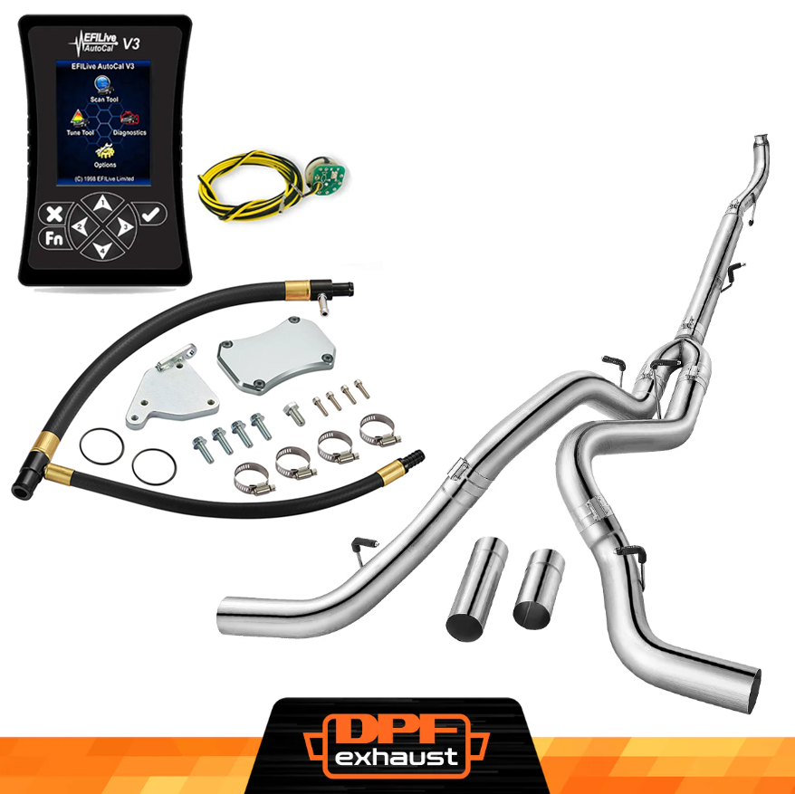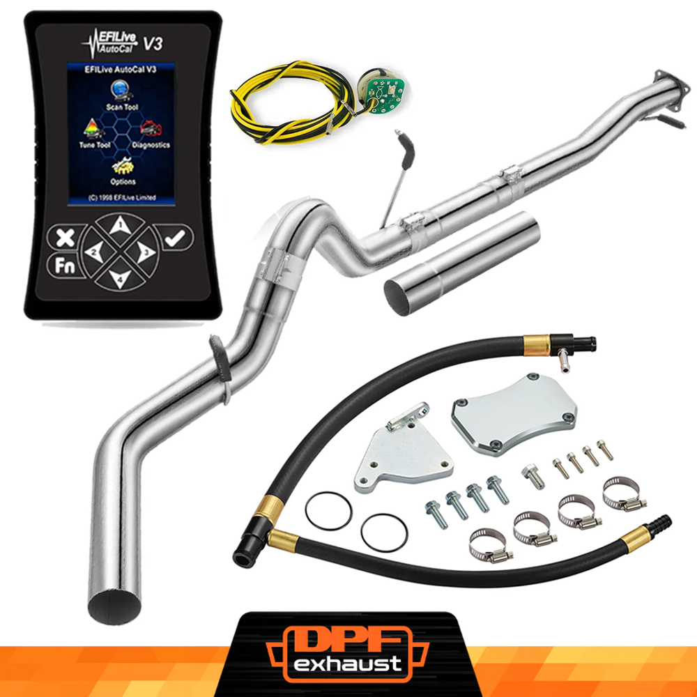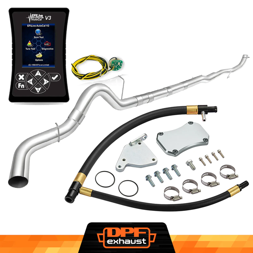 This kit comes with everything you need to delete the EGR, DPF, and DEF systems on your 2011-2016 LML Duramax. It includes the EFI Live AutoCal V3 for tuning and real-time adjustments, a complete EGR Delete Kit to improve engine efficiency, and a DPF Delete Race Pipe to optimize exhaust flow. It’s a one-stop solution for off-road performance upgrades.